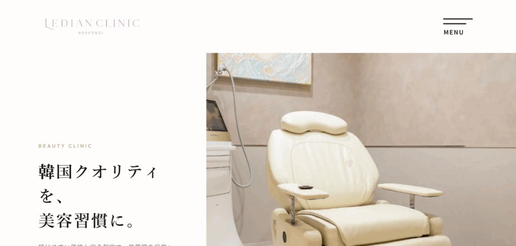 「美肌管理の駆け込み寺」として支持されるLEDIAN CLINIC。 話題の「ポテンツァ」や「ピコレーザー」など最新機器を完備し、悩みに合わせたオーダーメイド治療を提案。 特筆すべきは、種類豊富な美容点滴と、友人やカップルで利用可能な「ペアルーム」。