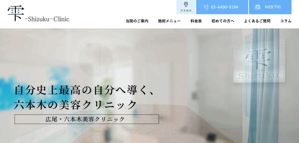 広尾・六本木エリアの美容皮膚科「雫-Shizuku- Clinic」。