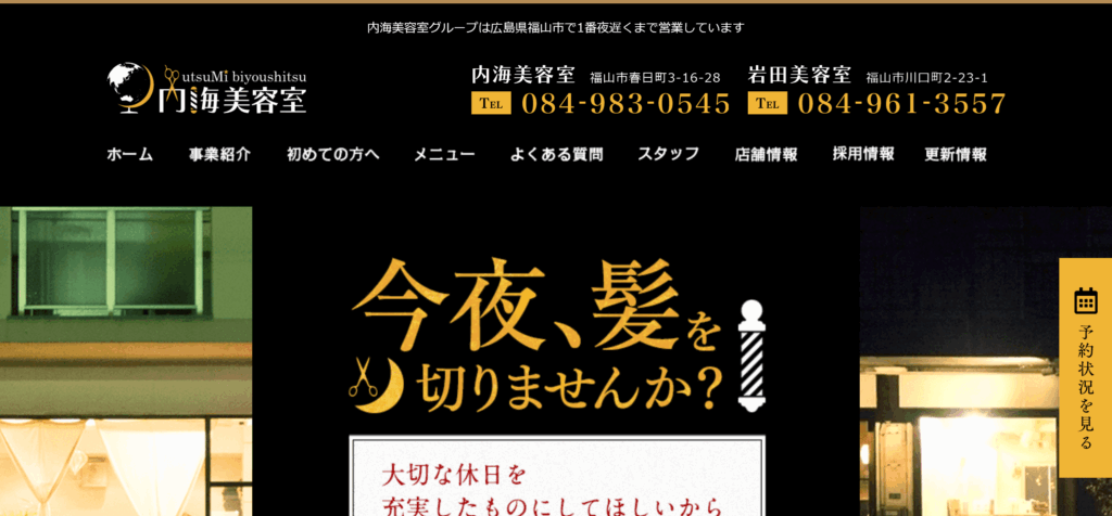 福山市で唯一無二の存在感を放つ「内海美容室」。 最大の特徴は、「平日深夜26時まで」という驚異の営業時間です。 「忙しい大人の自由時間」をテーマに、仕事帰りでも焦らず通えるサロンを実現。 深夜営業だけでなく、髪本来のツヤを取り戻す「電子トリートメント」や、返金保証付きの「最速育毛コース」など、結果にこだわるメニューも充実。 忙しさを言い訳にせず、美しさを追求したい方のための駆け込み寺です。