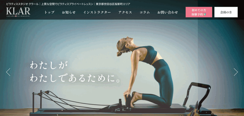 世田谷区桜新町にある「ピラティススタジオKLAR(クラール)」。