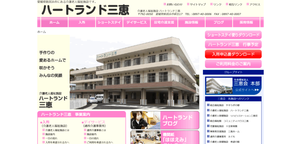 愛媛県新居浜市の「ハートランド三恵」は、社会福祉法人三恵会が運営する地域密着型の特別養護老人ホームです。長期入所をはじめ、ショートステイやデイサービス、居宅介護支援など幅広いサービスを展開し、心身の機能維持を目指したリハビリや音楽療法、レクリエーションを積極的に取り入れています。多床室とユニット型の両方を備えており、個々の状態に合わせた入浴設備や協力医療機関との連携により、安心感のある家庭的な生活環境を提供しています。