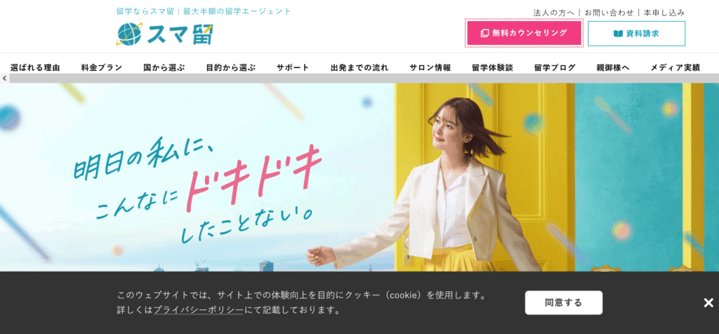 「スマ留」は、語学学校の空き時間を活用することで、従来の最大半額という圧倒的な低価格を実現した留学エージェントです。料金体系は「国×期間」のシンプルなパッケージプランで、後から追加費用が発生する心配もありません。世界各国の学校と提携し、24時間体制の現地サポートや帰国後の英語学習支援も充実しています。コストを抑えつつ、質の高い海外体験を賢く手に入れたい学生や社会人に最適なサービスです。