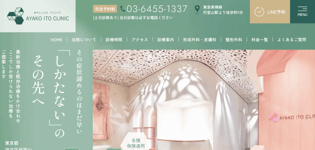代官山駅から徒歩1分の「あやこいとうクリニック」は、形成外科・美容皮膚科から整形外科までを網羅し、最新治療と既存治療を掛け合わせたトータルケアを提供する総合クリニックです。