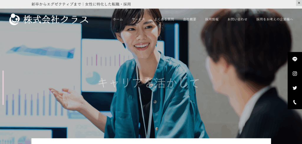 株式会社クラスは、関西を中心に全国のあらゆる層の「女性の転職」をサポートしているサービスです。