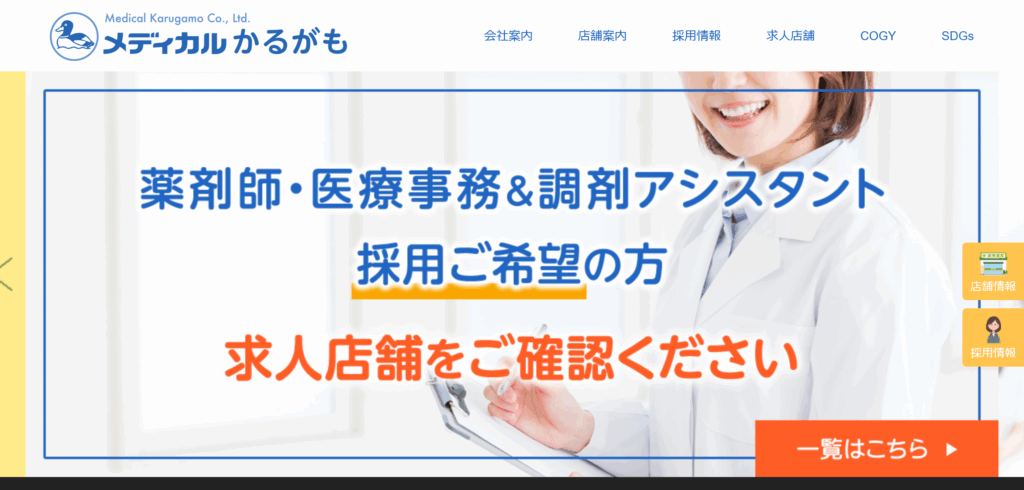 かるがも薬局のほか、ドレミ薬局、かえで薬局など周辺薬局の求人情報を掲載しているため、地域で薬剤師求人を探しているとき参考にしましょう。